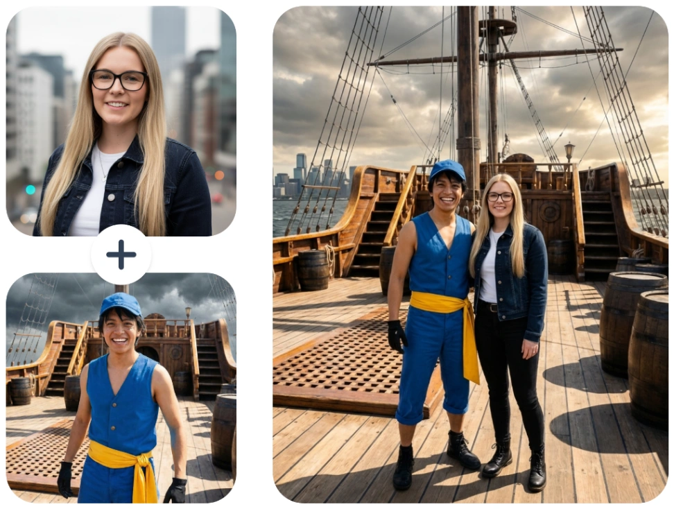 In the past, putting two people together in a picture required expensive Photoshop experts or resulted in "fake-looking" collages with visible seams and mismatched lighting.